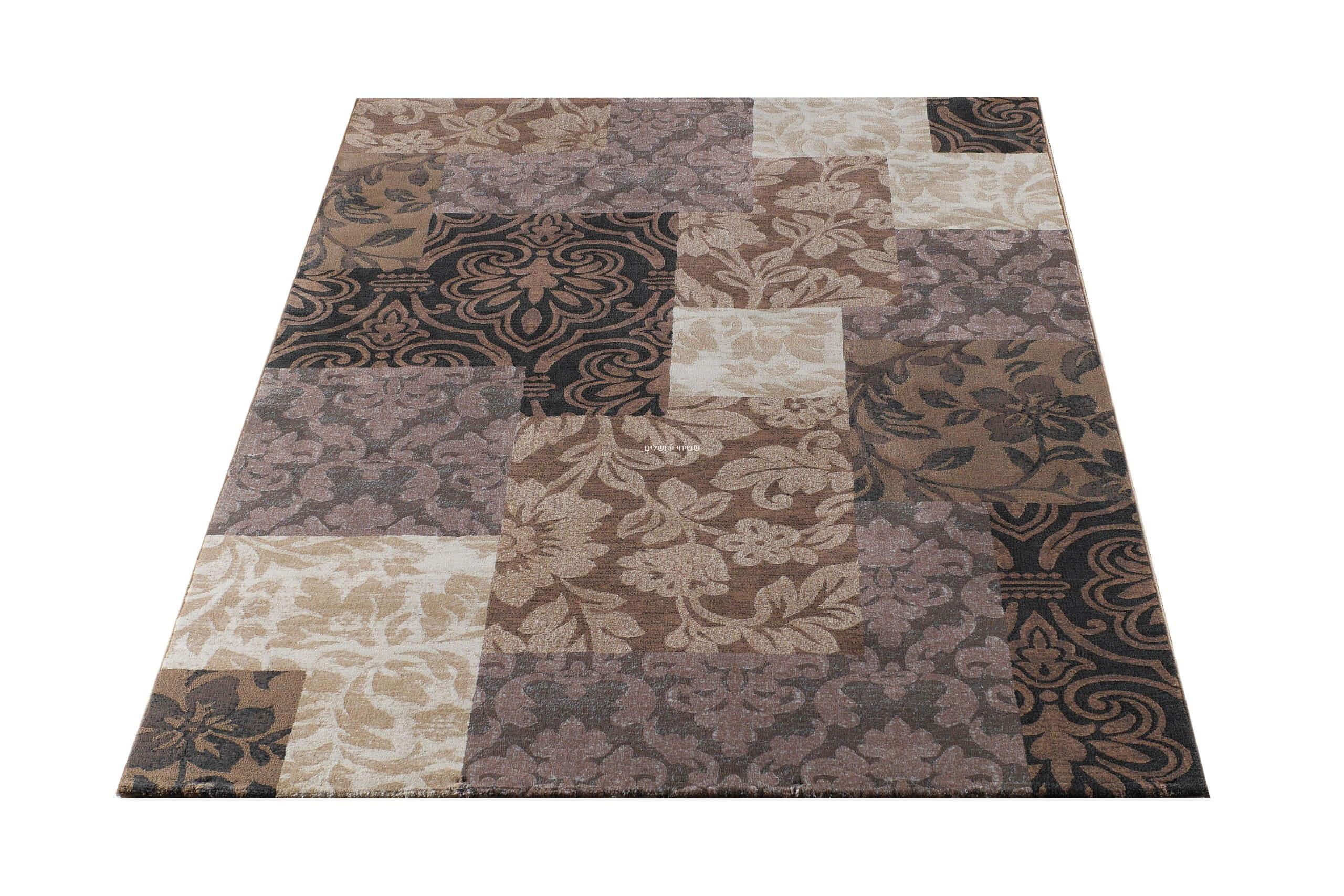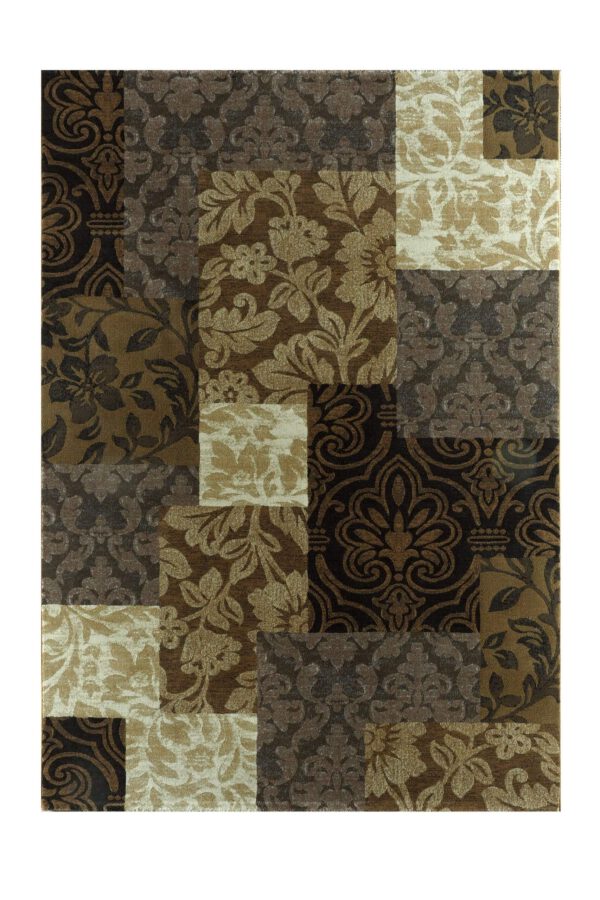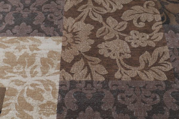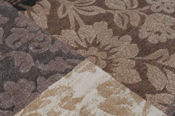 דוגמאות שטיחי טלאים בשילוב צבעים בגווני חום, בז’ ושחור.
