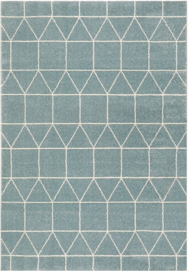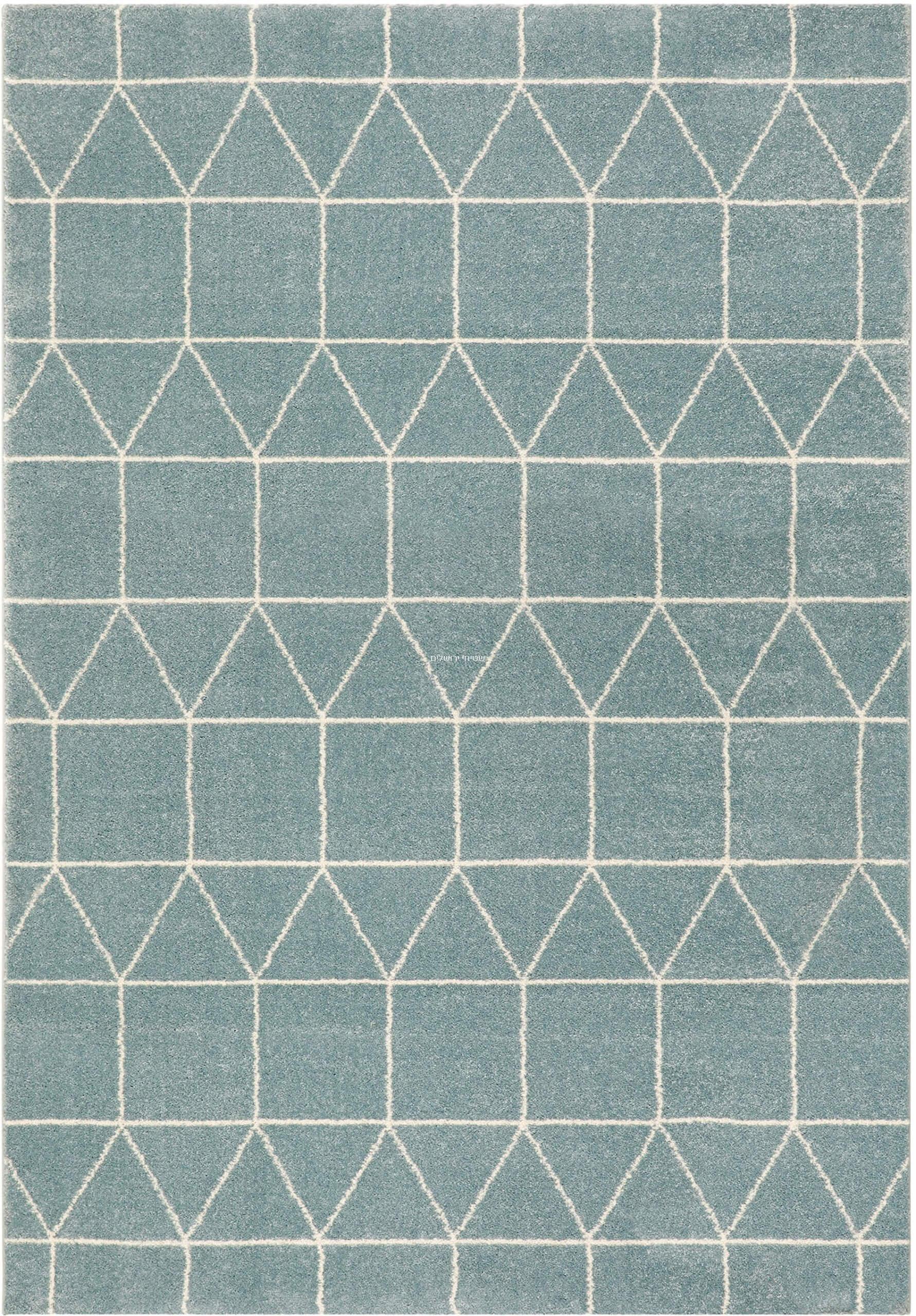 שטיח מודרני בסגנון גאומטרי בשילוב צבעי כחול נייבי ולבן.