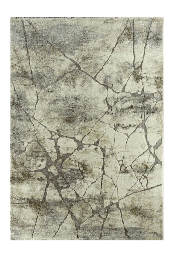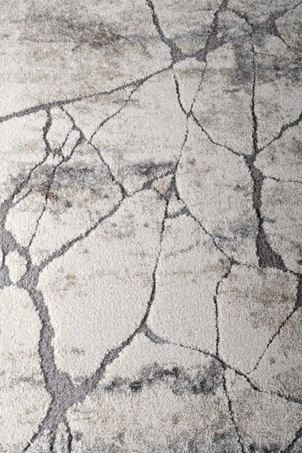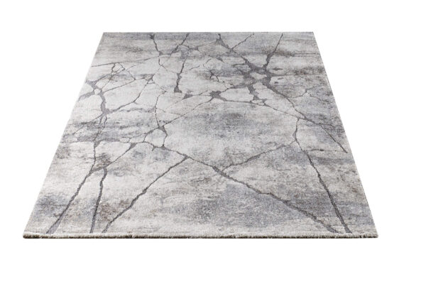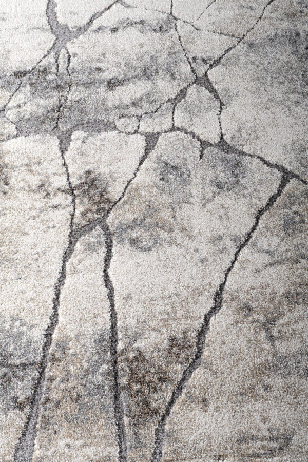 שטיח מודרני אבסטרקטי בדוגמת שברי בטון עם נגיעות עדינות של צבעי אפור בהיר ואפור כהה.