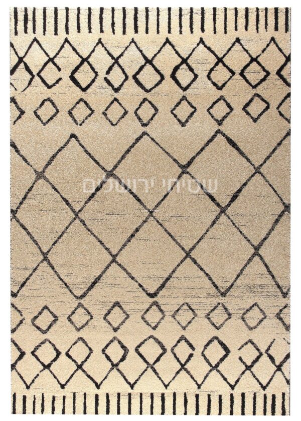 שטיח מודרני המעוצב בסגנון ובהשראת שטיחים מרוקאים,דגם אתני עם מוטיבים גיאומטריים.