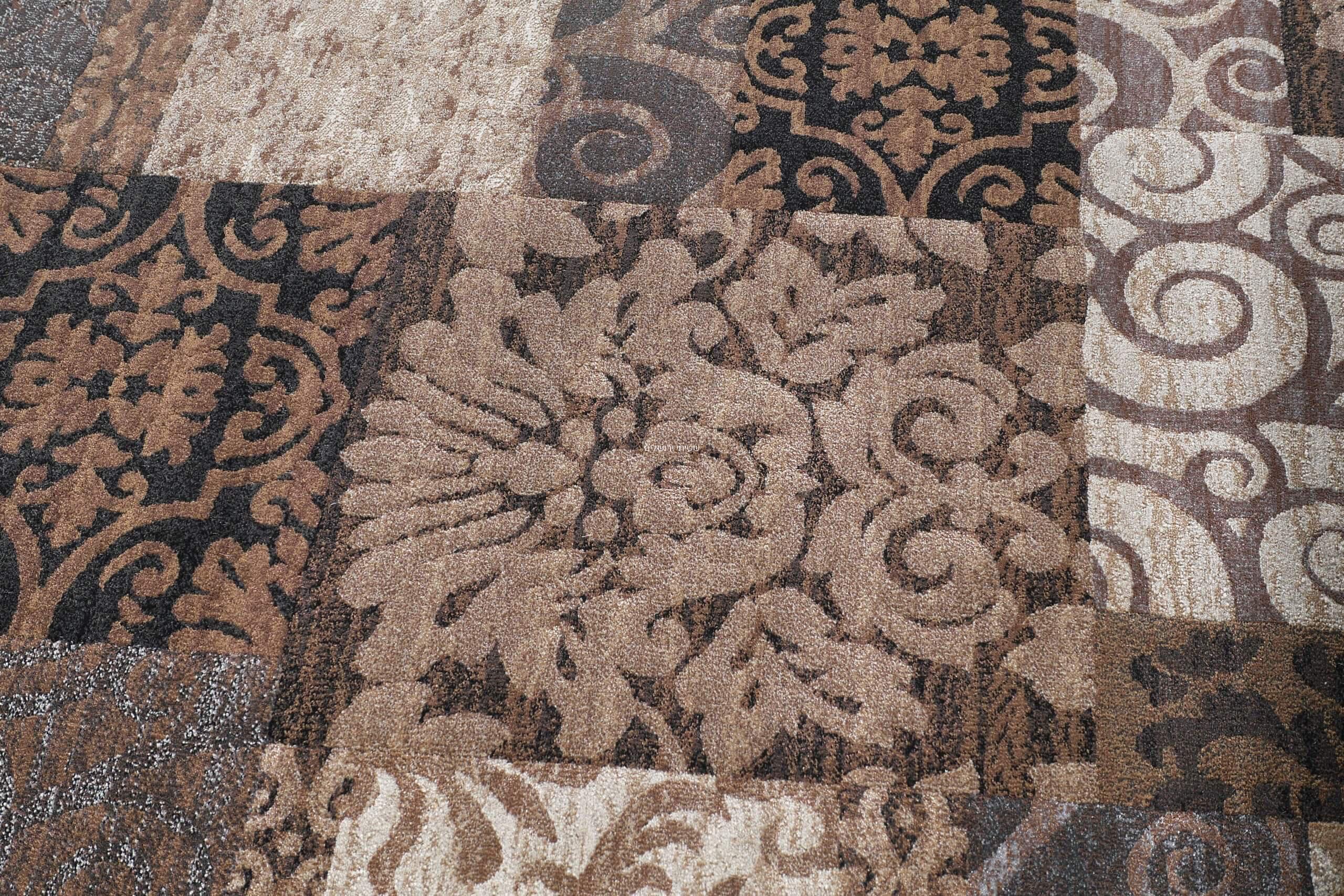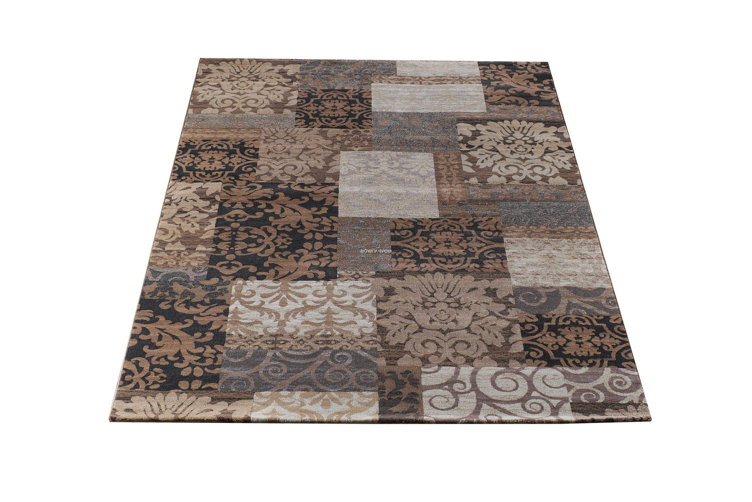 דוגמאות שטיחי טלאים בשילוב צבעים בגווני חום, בז’,שחור ולבן.