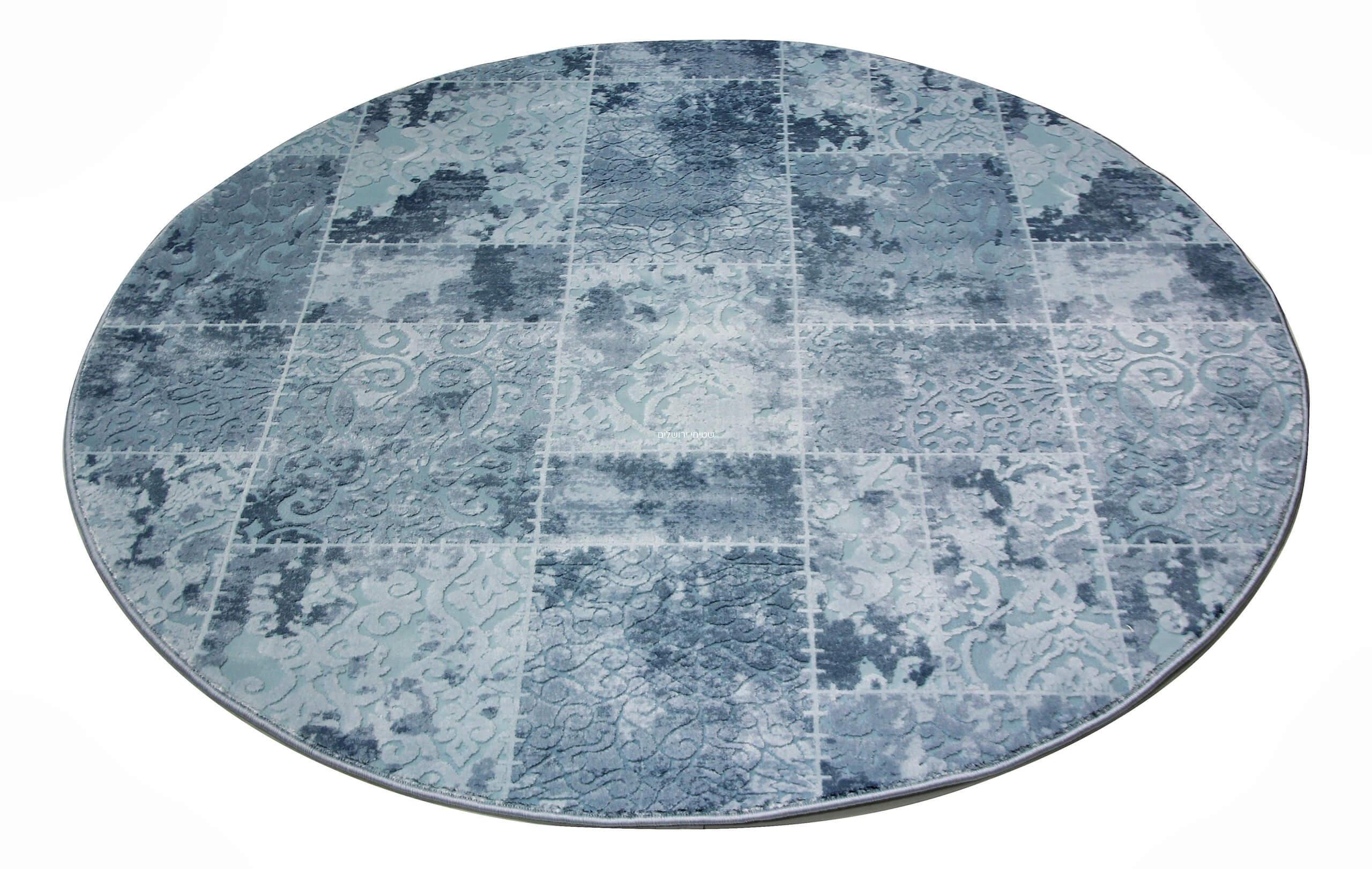 שטיח מודרני עגול בסגנון וינטאג’ עם דוגמאות של שטיח טלאים.