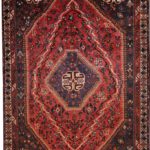 שטיח קלאסי בדוגמת פרחים עם רקע בהיר ומסגרת בצבע אדום.